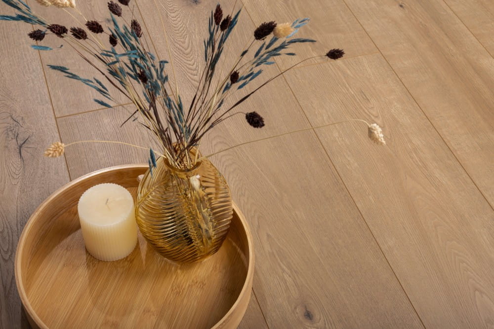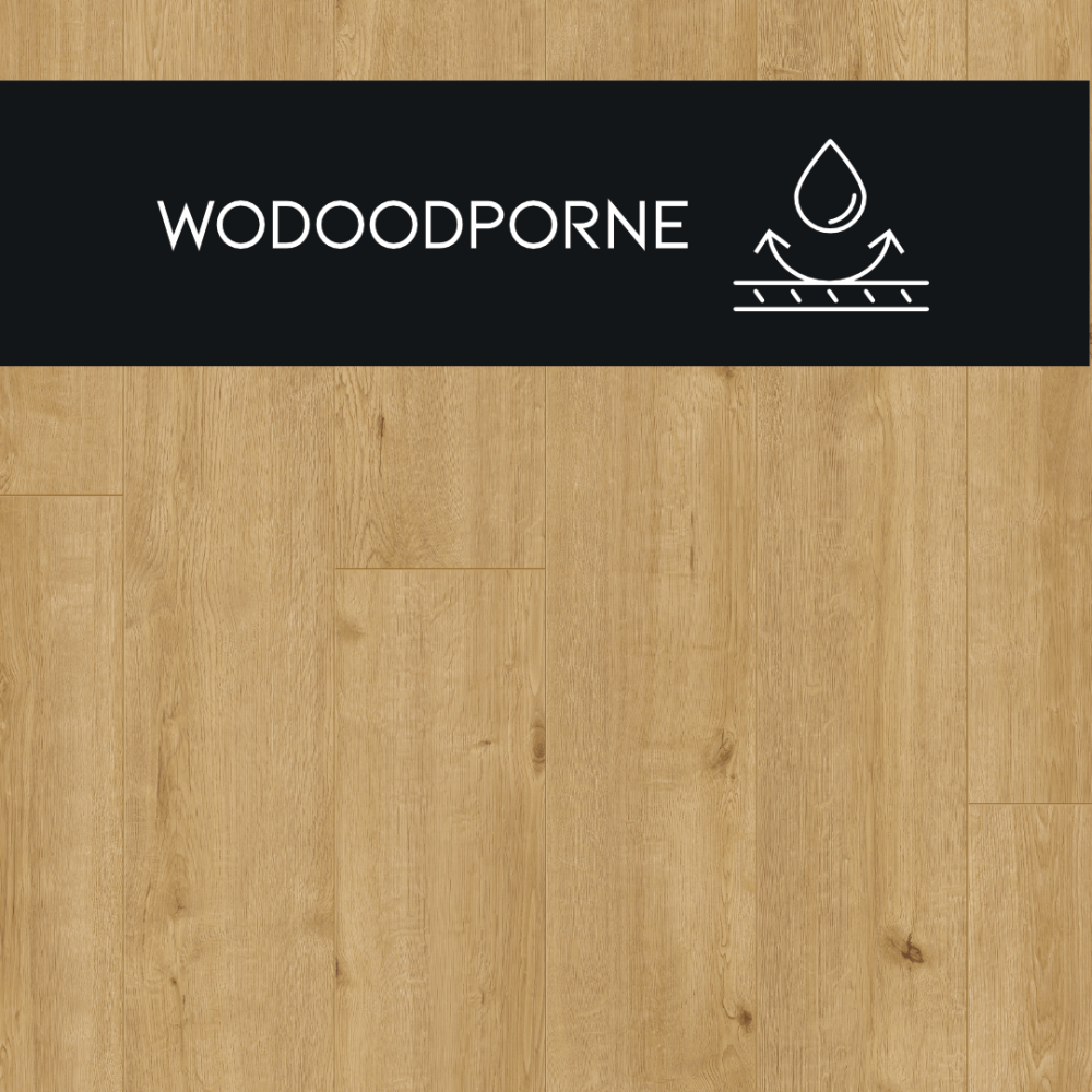 Dąb Autentyczny to ciepły, naturalny odcień z wyraźnymi żyłkami i słojami, które wiernie odwzorowują wygląd drewna. Perfekcyjne dopasowanie kolorystyczne idzie w parze z zastosowaniem technologii embossing, dzięki której wzór na powierzchni harmonizuje z subtelnymi żłobieniami, doskonale imitując naturalny surowiec. Ciepły odcień Dębu Autentycznego nadaje wnętrzom przytulności i elegancji.